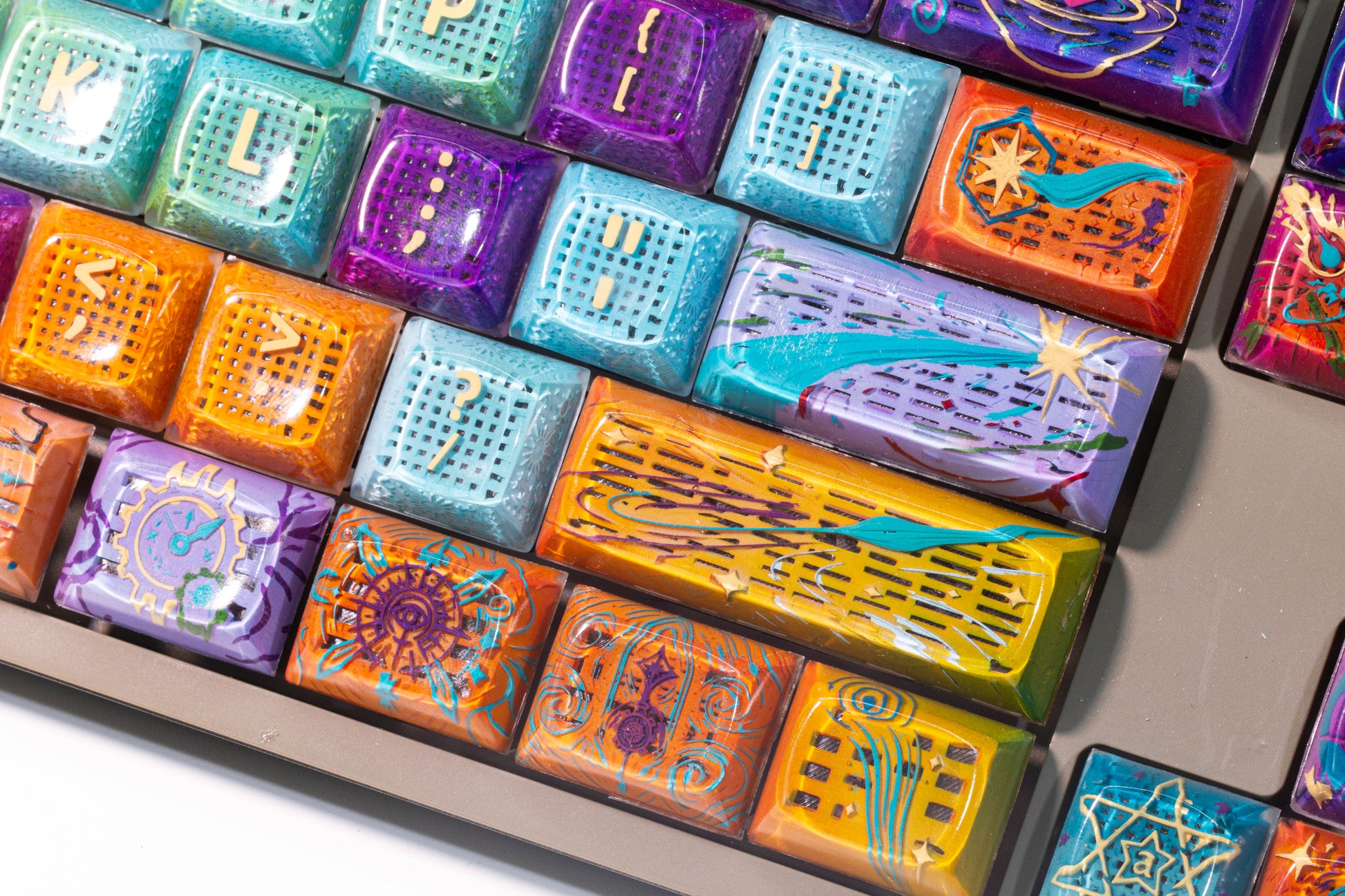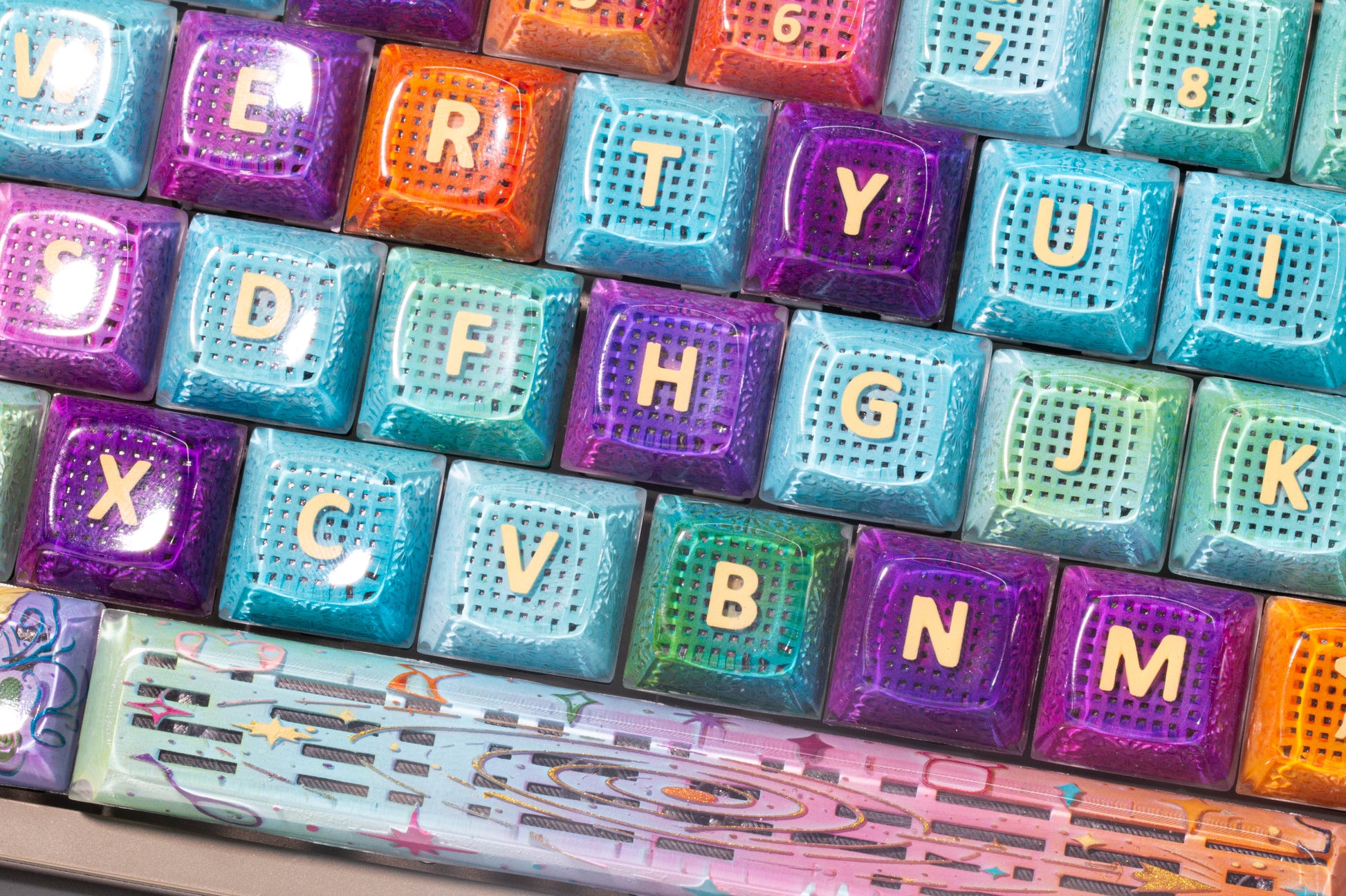 These galaxy keycaps are absolutely stunning. The resin has such depth, it feels like looking into space. My keyboard has never looked better!